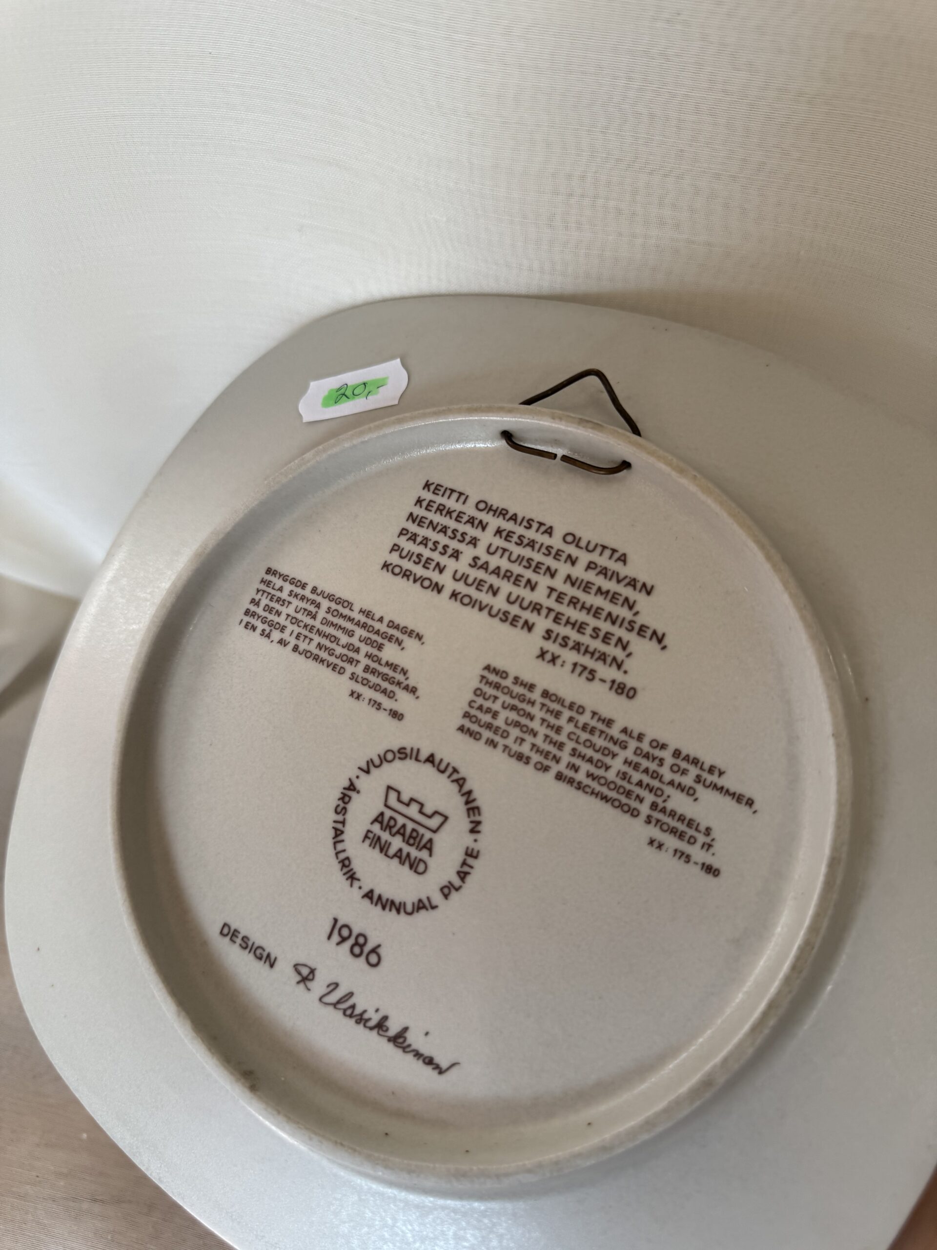 Arabia ja Raija Uosikkinen, Kalevala vuosilautanen 1986.