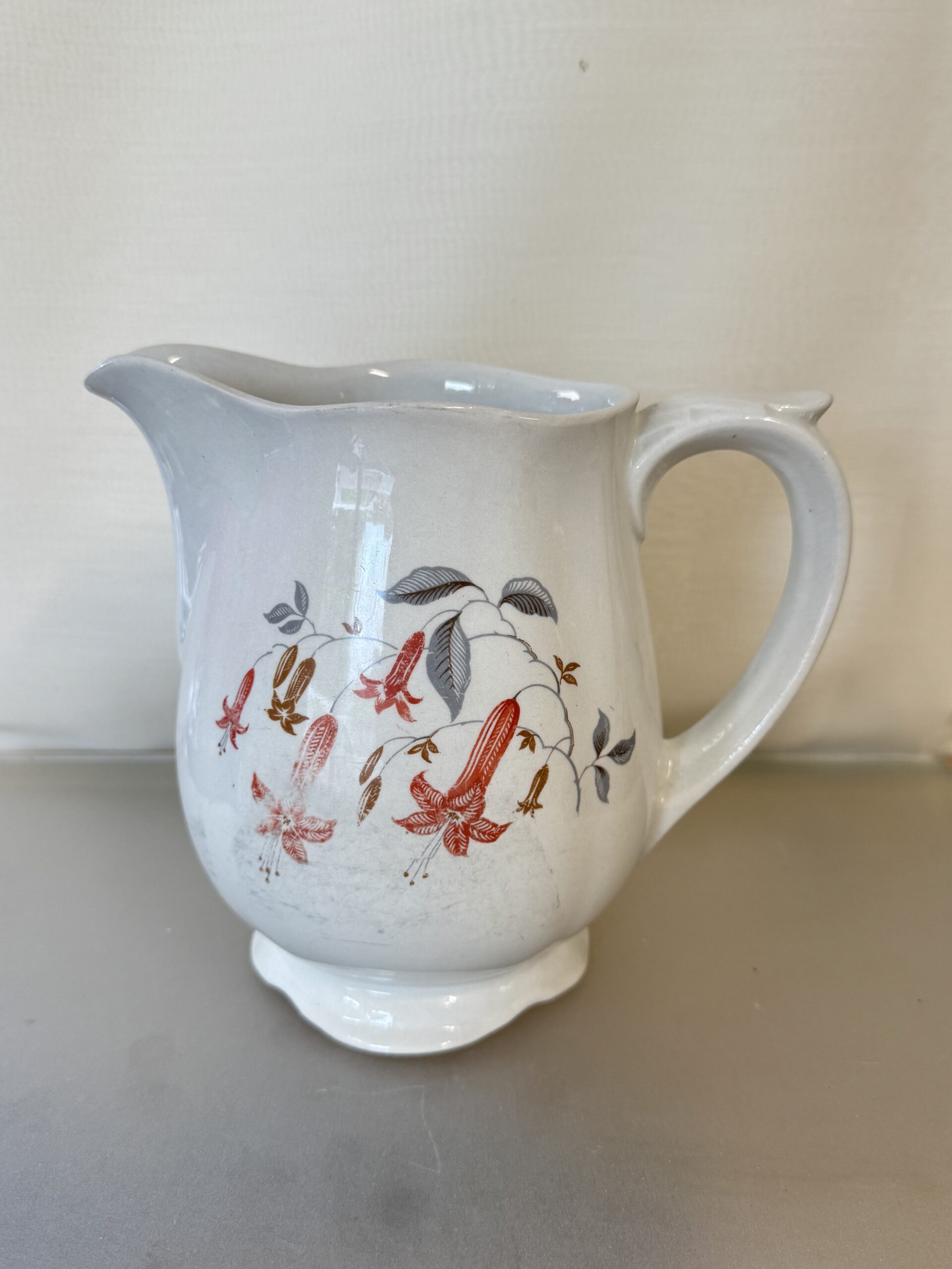 Arabia Verenpisara kaadin, korkeus 16 cm. Koko pyöreydeltä mustaa naarmujälkeä.