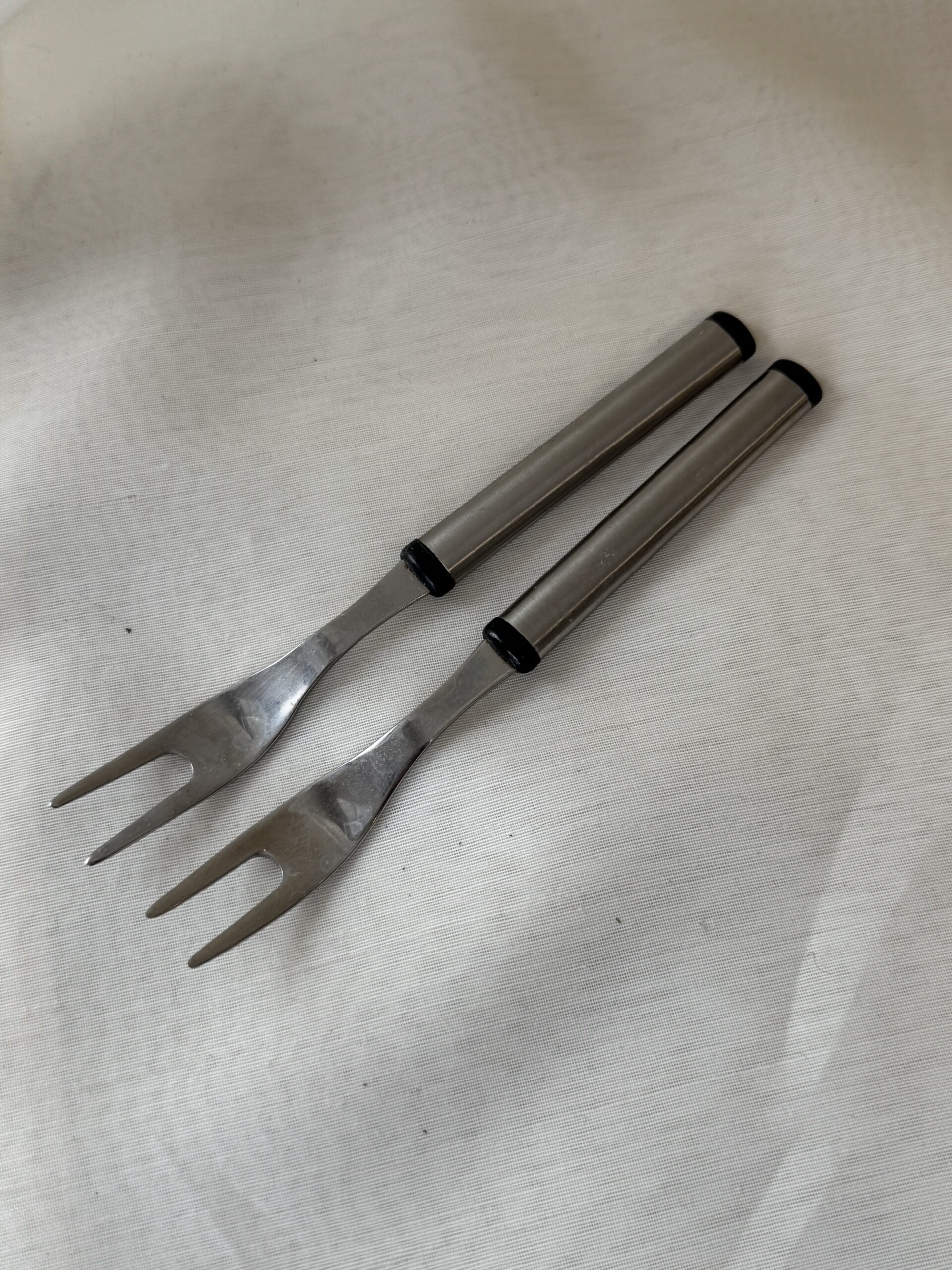 Hackman Elegia leikkelehaarukka, Ahti Majuri suunnittelijana. Pituus 13 cm.