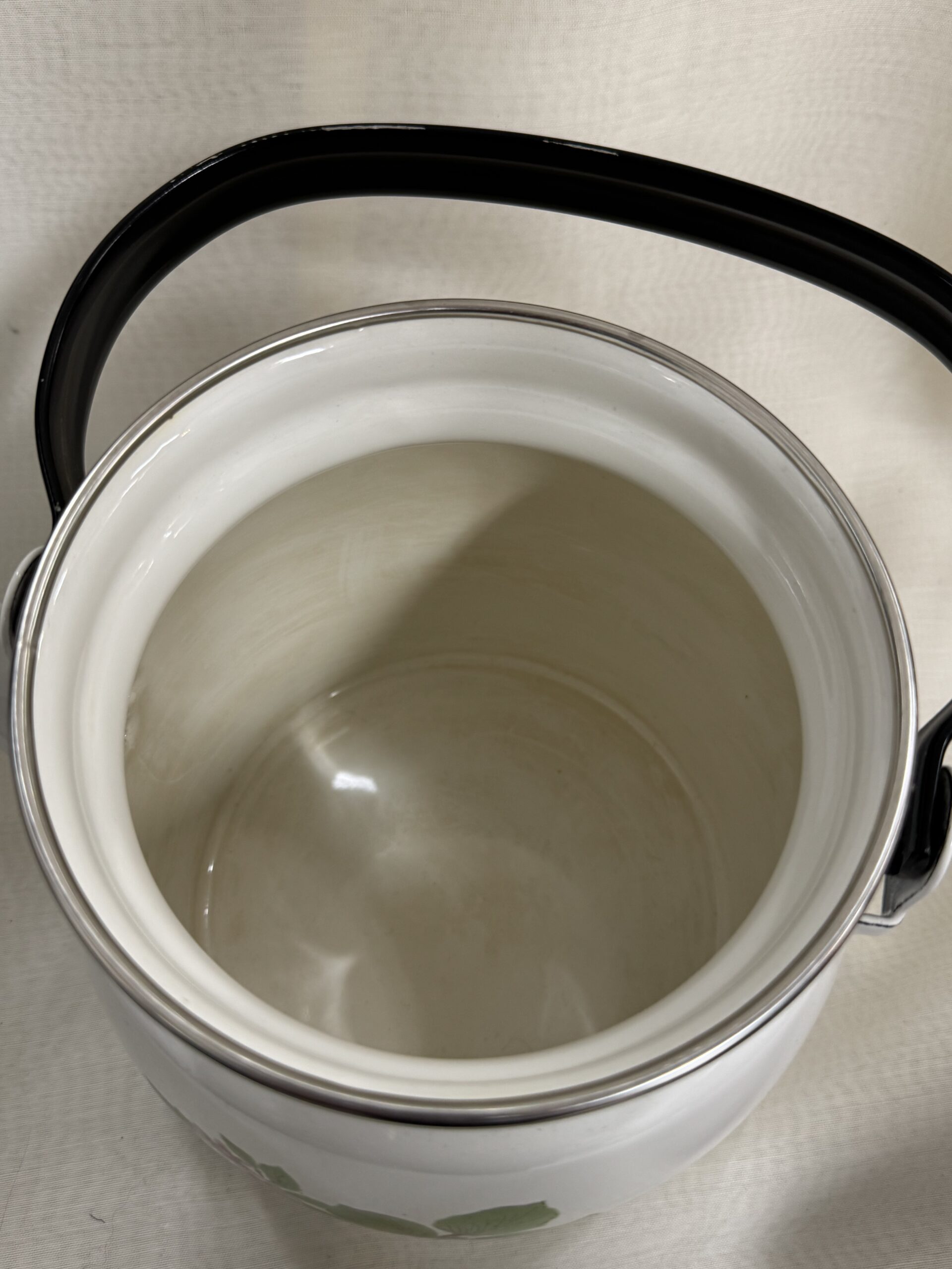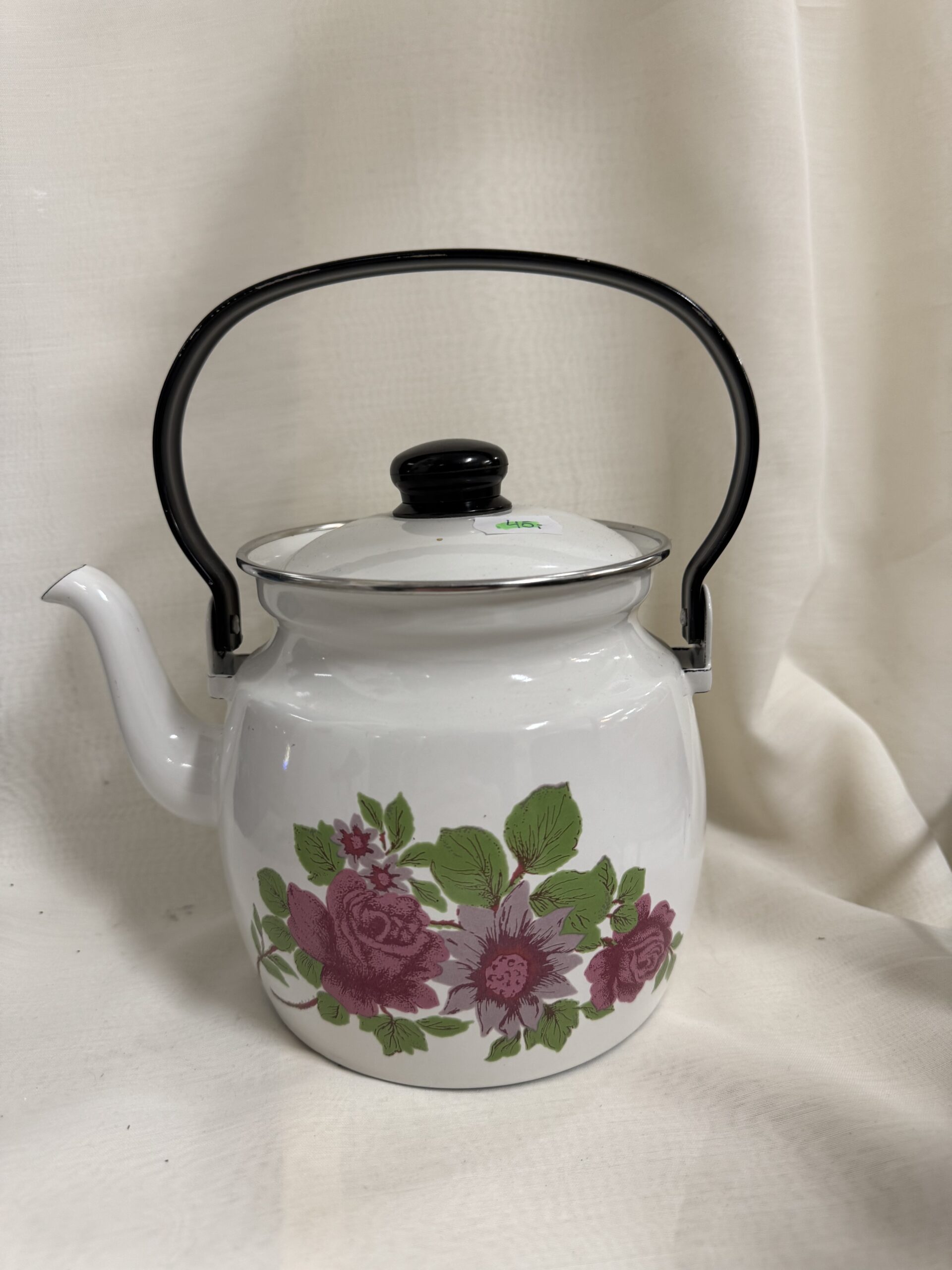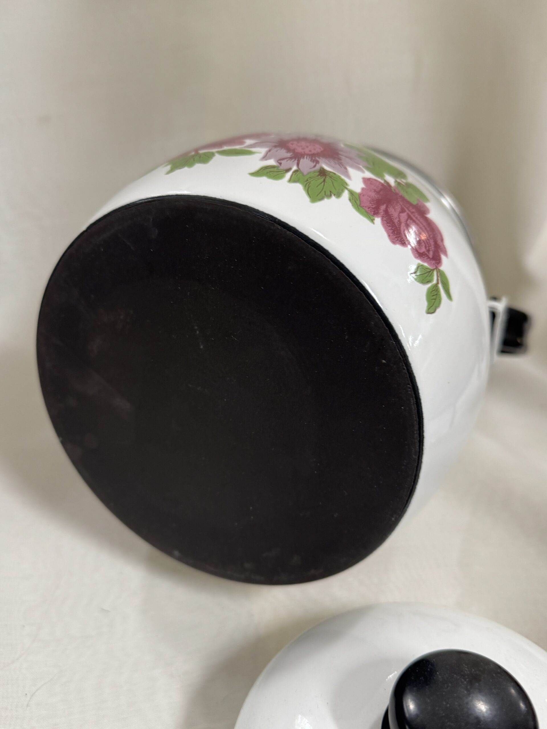 Finel emalipannu kukkakoristeella, Isokukka? Hyvässä kunnossa, sisustan pienen värjäytymän saa pois pesulla.