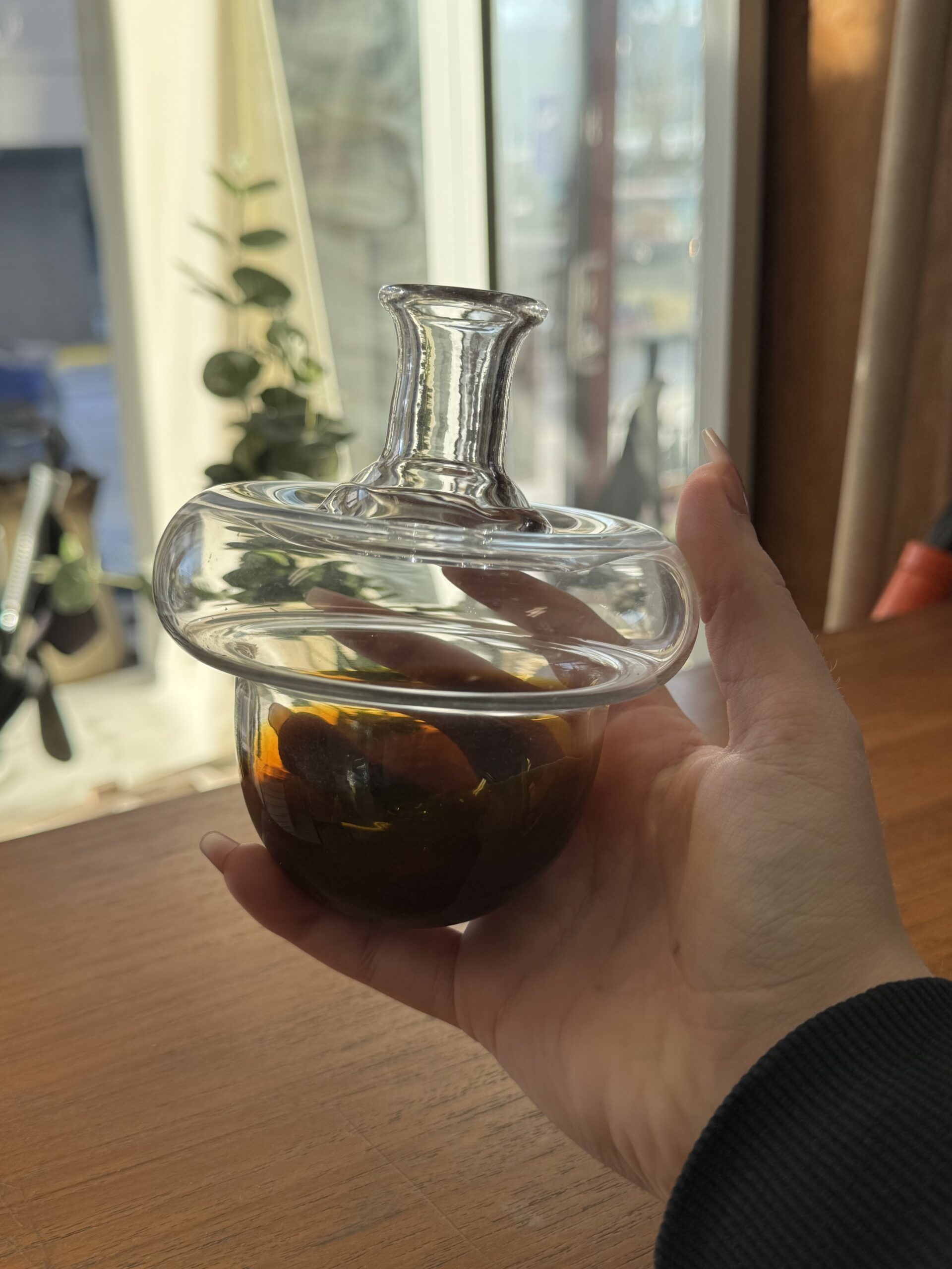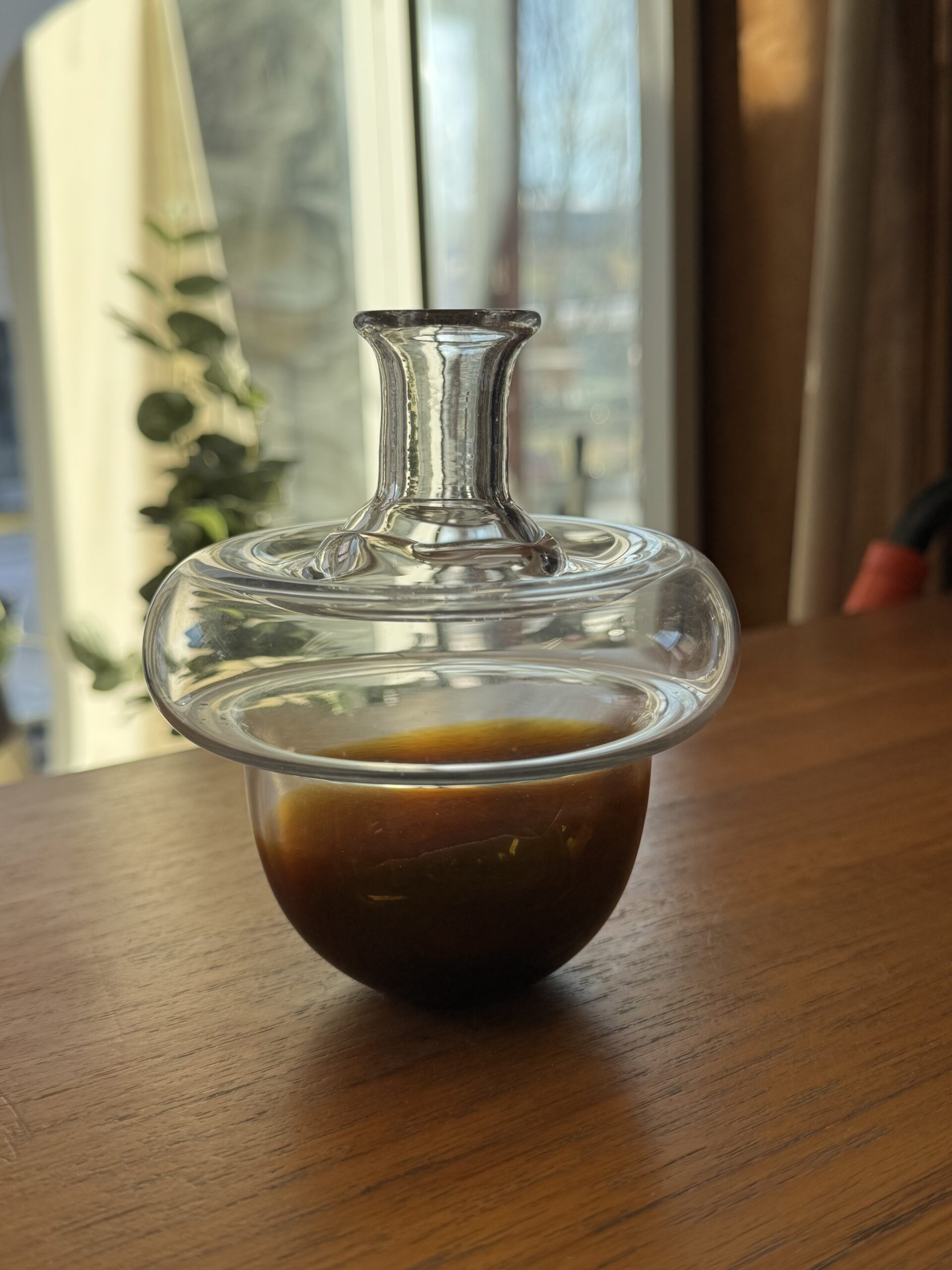 Riihimäen Lasi, Helena Tynell maljakko, signeerattu. Koko 12 x 14 cm.