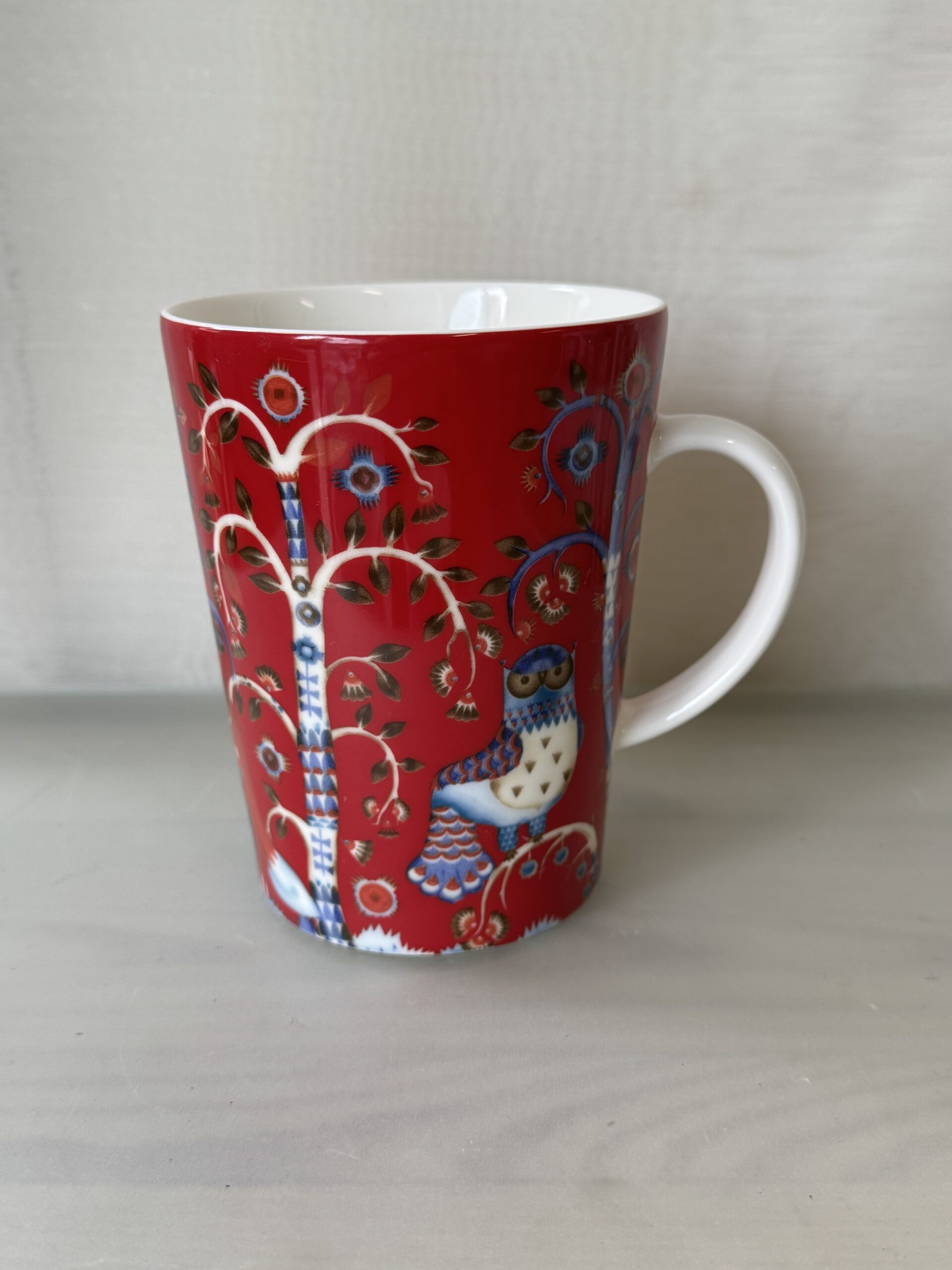 Iittala Taika muki, punainen, vetoisuus 0,4L. Korkeus 11,5 cm.