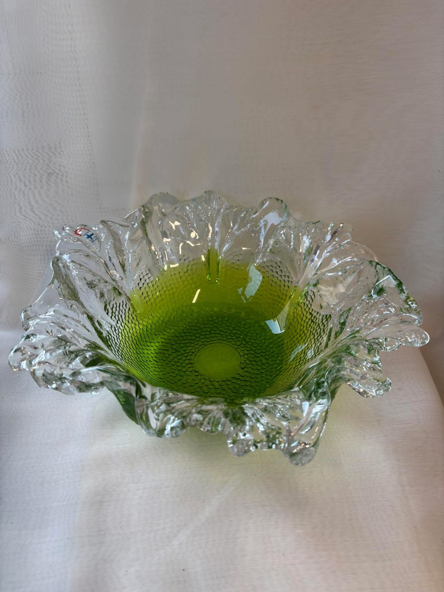 Humppilan Lasi, Kasvimaalla kulho, signeerattu Pertti Santalahti. Halkaisija 30 cm.