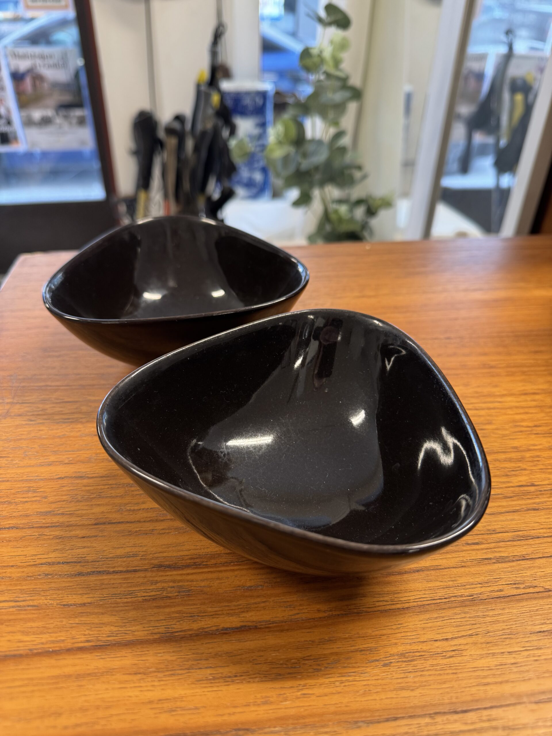 Arabia, Kaj Franck, Kilta kolmiokulho. Nämä siis pyöristettyä mallia. Korkeus 5,5 cm, ø 13 cm.
