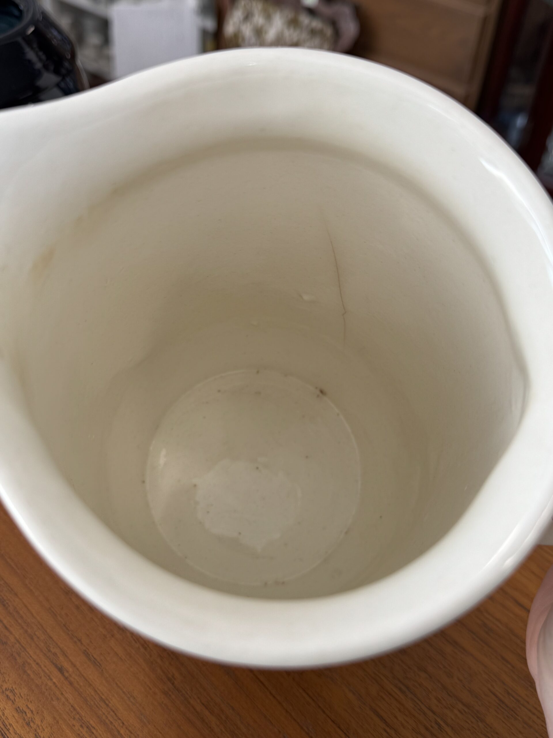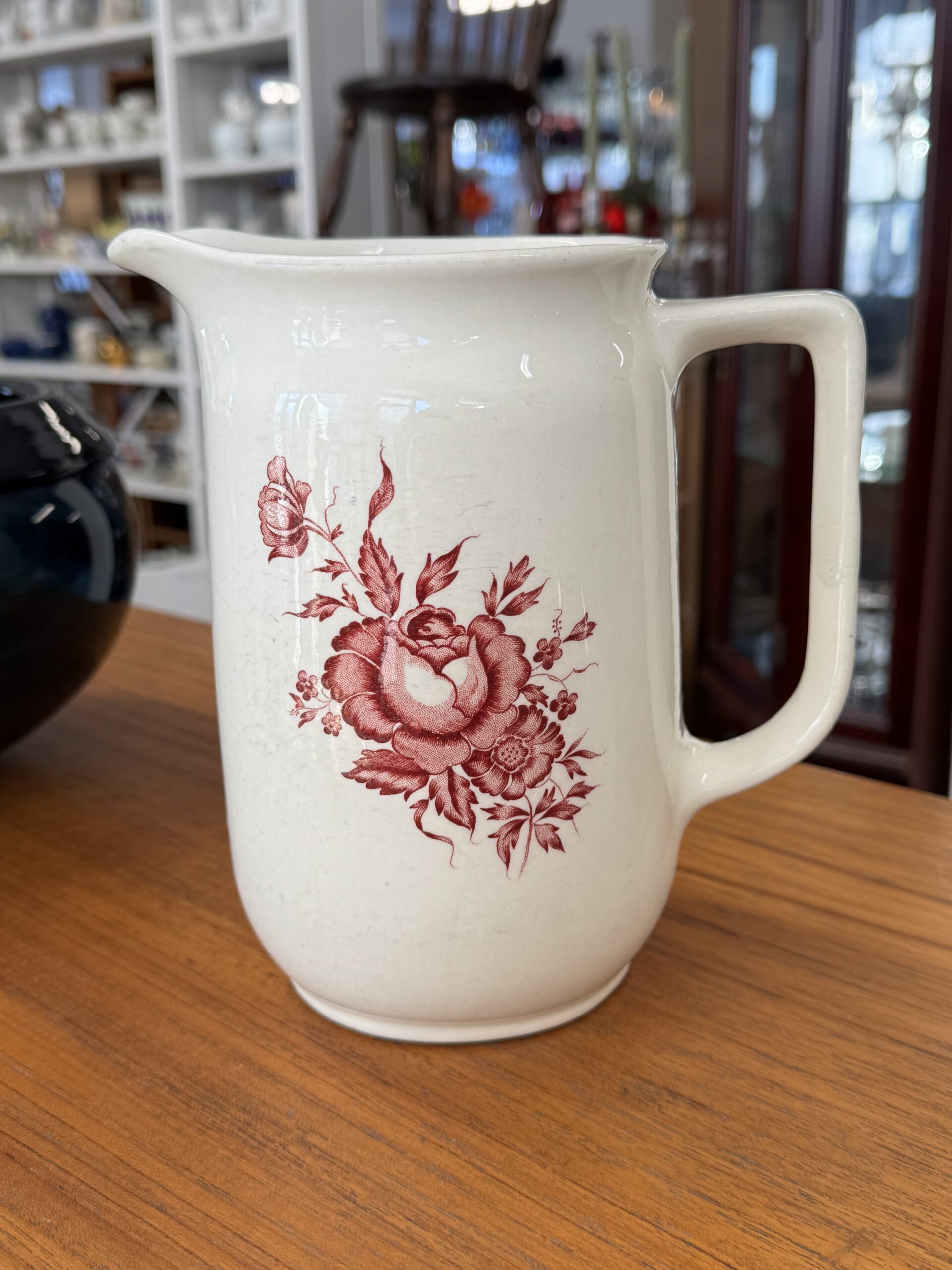 Arabia Kolme ruusua kannu, kyljillä viirua, sisällä halkeama. Korkeus 19,5 cm.