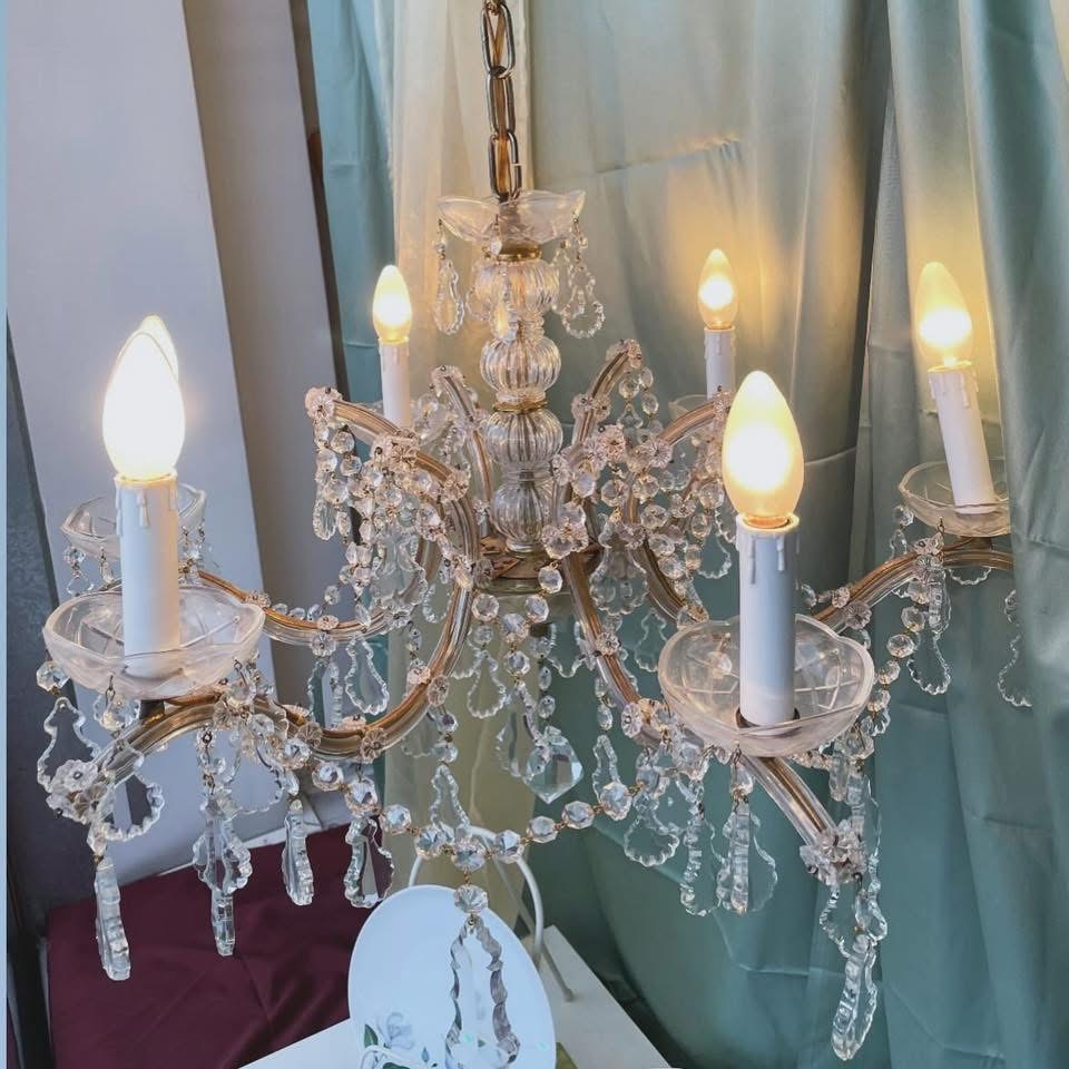 Maria Theresia kristallikruunu. Tämä olisi oikeasti kookas kruunu, ø 70 cm, korkeus 90 cm ketjun kanssa.
