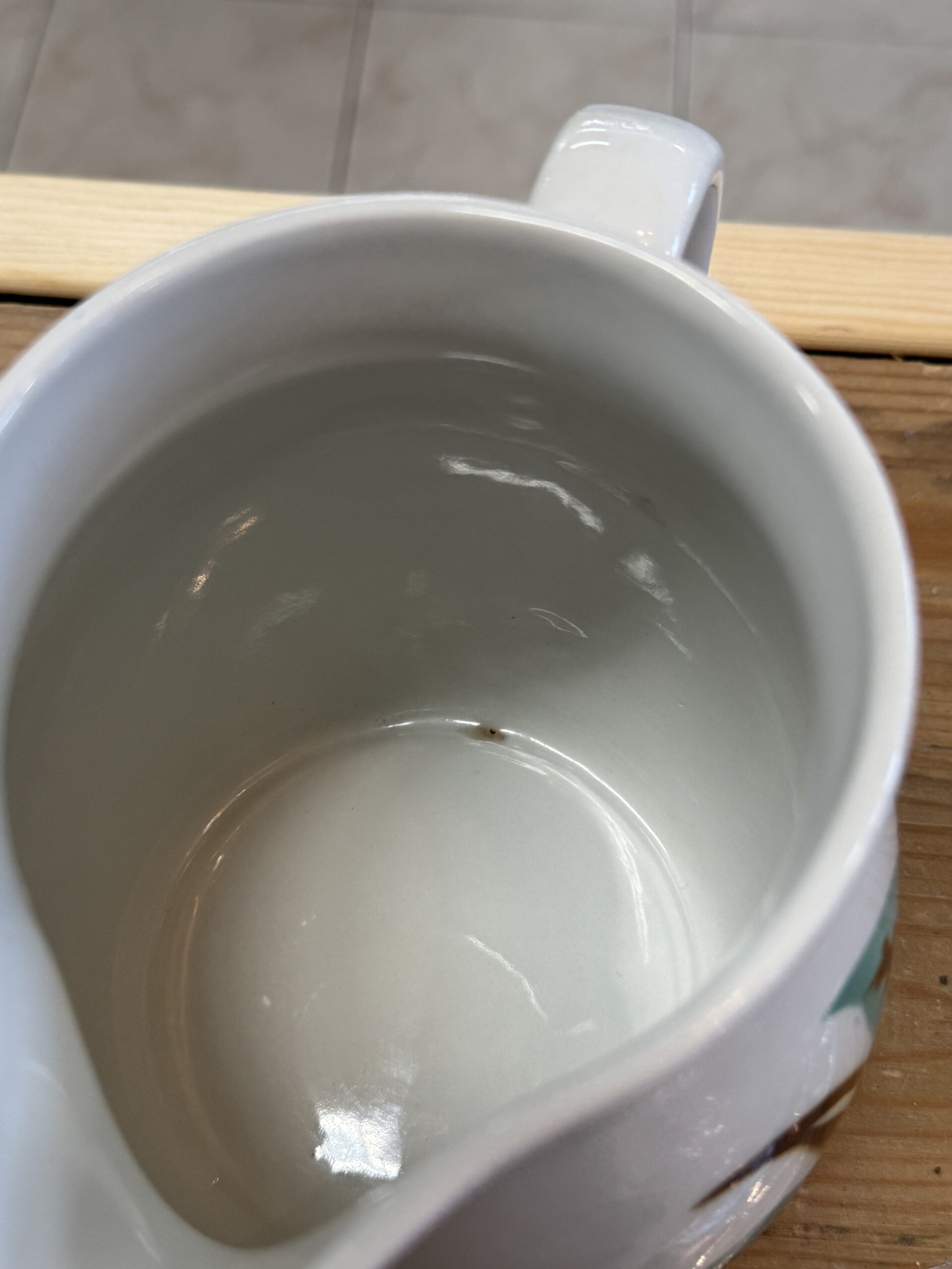 Arabia Oksa kannu, korkeus 13 cm. Sisäpohjassa ruskea jälki, muutoin siisti.