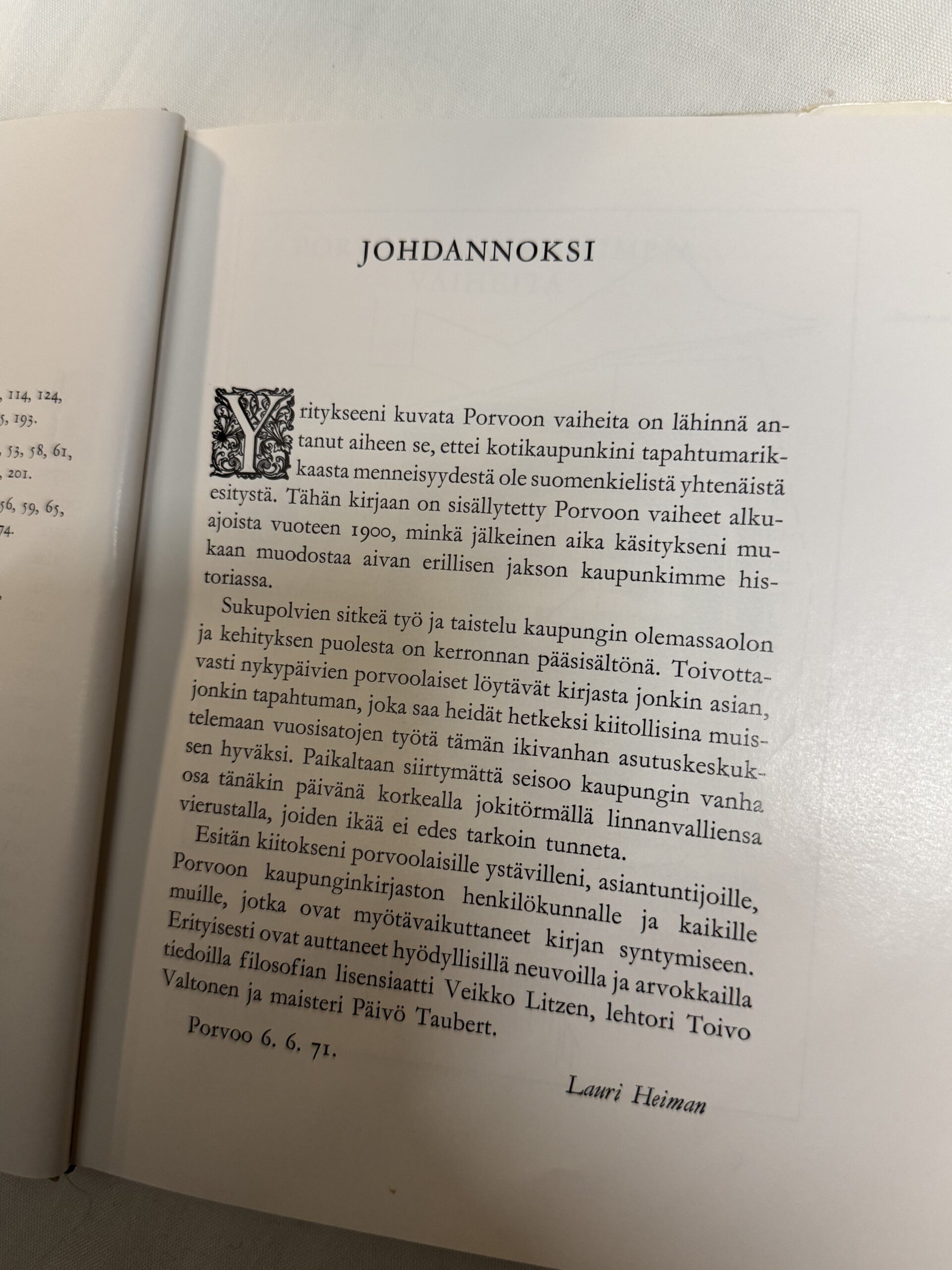 Lauri Heiman, Porvoon vaiheita. Kovissa kansissa, kansipaperit tallella ja kohtuullisessa kunnossa. Sivumäärä 205.