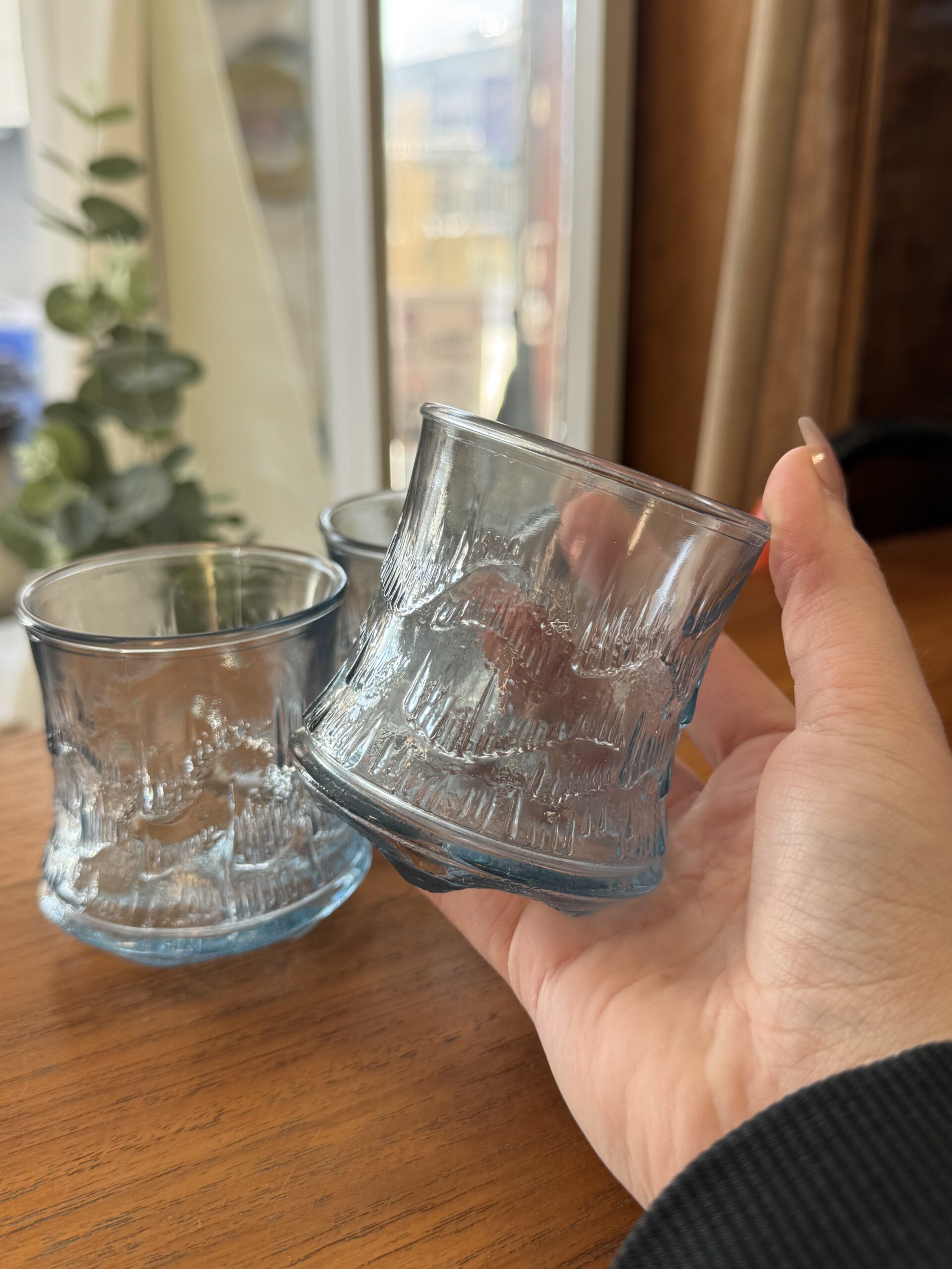 Erkkitapio Siiroinen, Revontuli lasi, sininen lasi. Korkeus 8 cm, ø 7 cm.