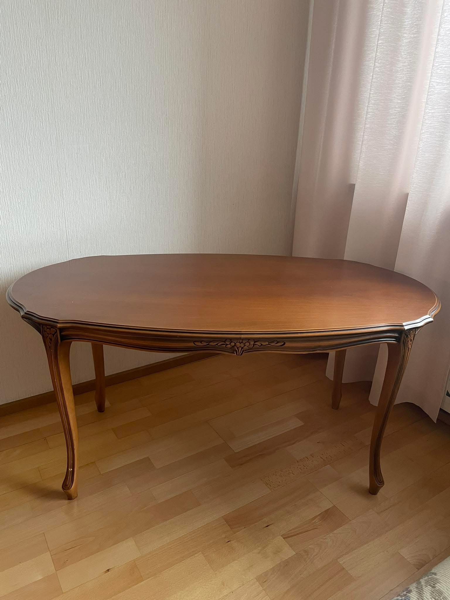 Soikea sohvapöytä olisi rokokoo tyyliä. Koko 118 x 62 cm, korkeus 58 cm. Tämä erittäin priimassa kunnossa.