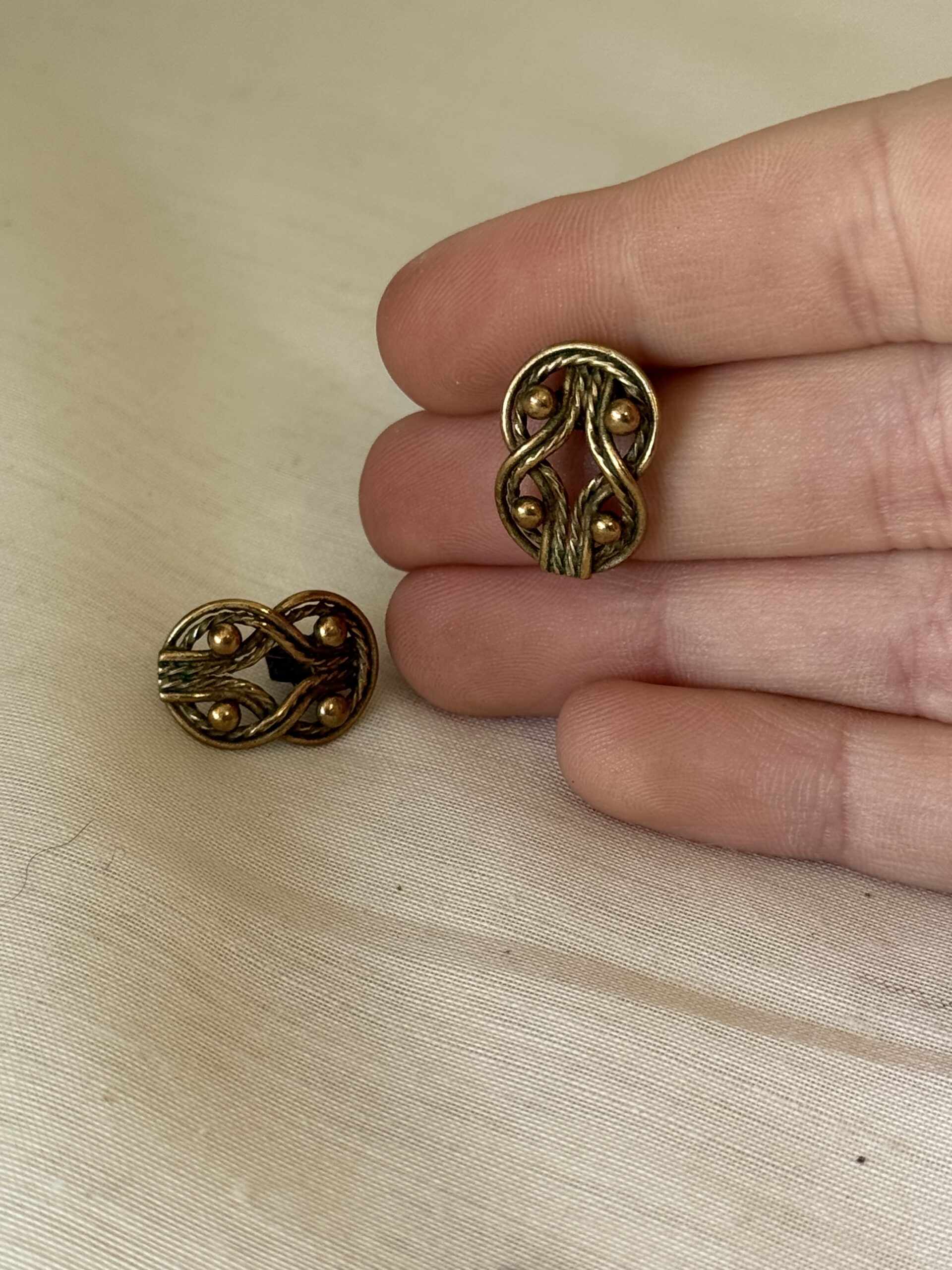 Kalevala Koru, Teljänneito korvakorut piikeillä, pronssia. Koko n. 1,5 x 1 cm.