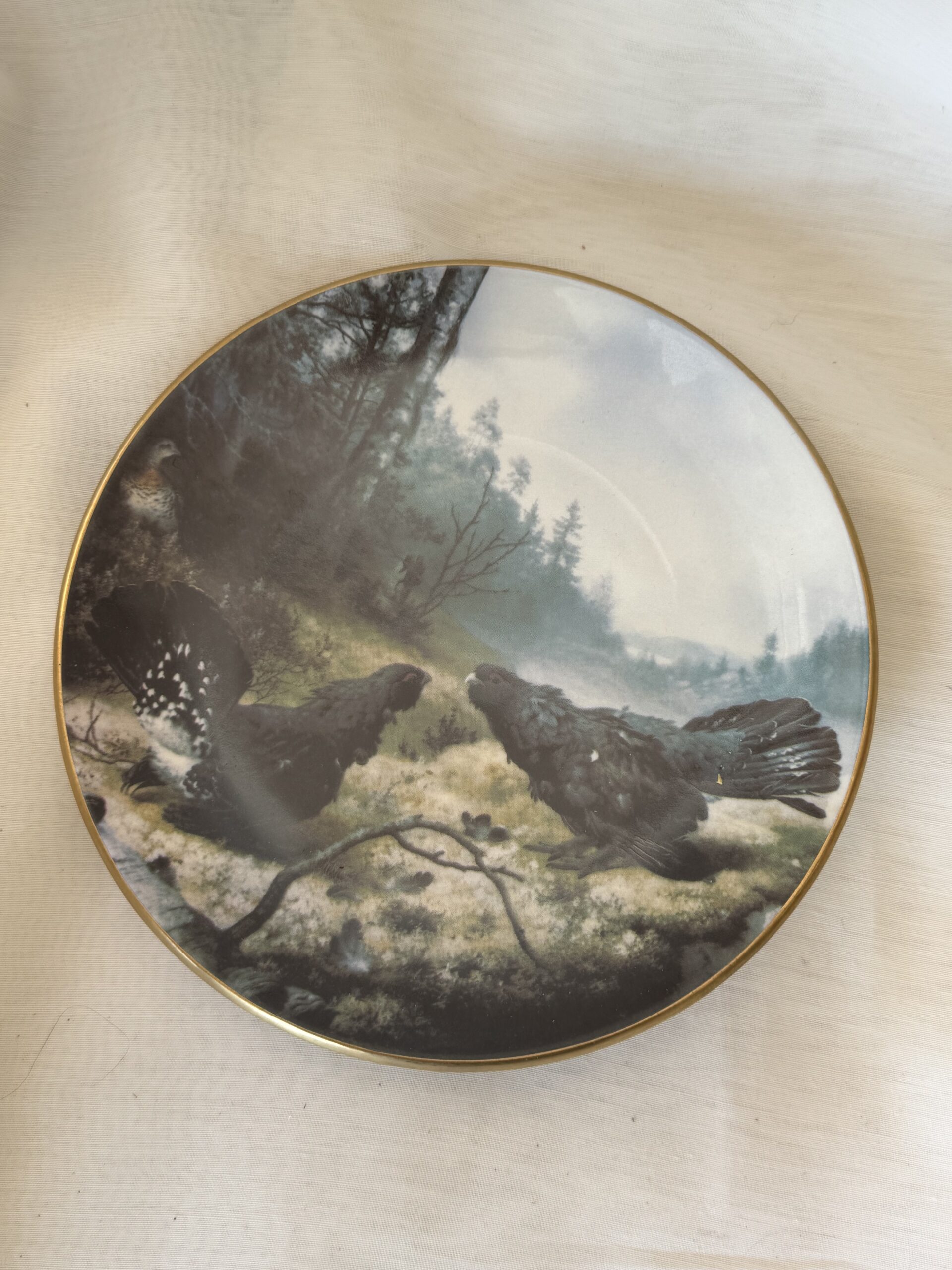Arabia, Von Wright, Taistelevat metsot seinälautanen. Halkaisija 20 cm.